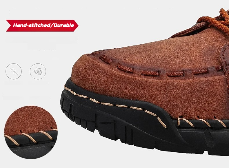 Sie werden den Unterschied spüren, den echte Handwerkskunst ausmacht. Unser Obermaterial aus Vollrindleder ist an allen Belastungspunkten mit verstärkten Handnähten versehen – keine geklebten Nähte, die sich mit der Zeit lösen oder reißen können. Die zweifarbige Oberfläche kaschiert Kratzer gekonnt, während sich das Leder natürlich an Ihren Fuß anpasst. Dies ist Schuhwerk, das mit Ihnen altert – nicht gegen Sie.