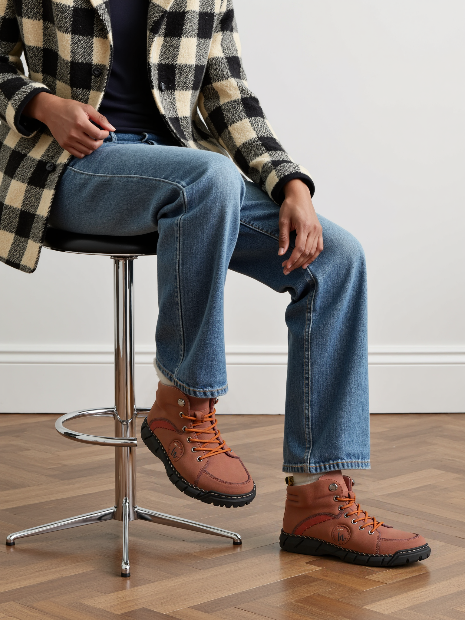 Wir sind aus gutem Grund auf echte Lederschnürsenkel umgestiegen: Sie halten fest, ohne zu drücken. Die gewachste Oberfläche sorgt dafür, dass die Knoten auch auf nassen Gehwegen oder unebenen Pfaden sicher halten. Kein lästiges Anhalten mehr zum Nachbinden, wenn Sie Gepäck tragen oder sich durch Menschenmengen bewegen. Das ist die Gewissheit, zu wissen, dass Ihr Schuh im entscheidenden Moment nicht nachgibt.